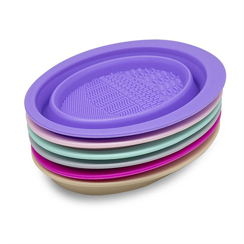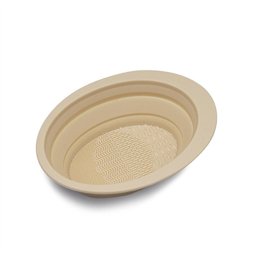 硅膠材質的碗,上面有三種不同的凸起,能照顧到每種化妝刷。